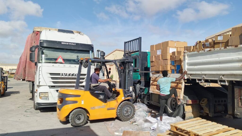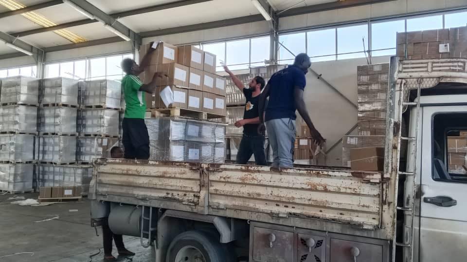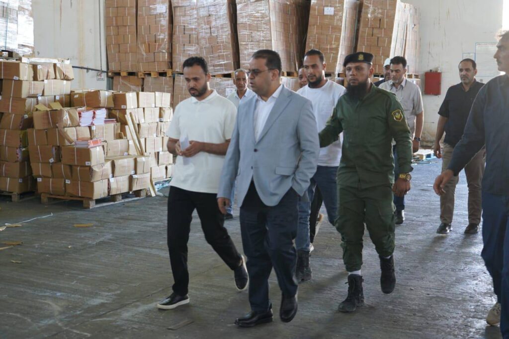 The Acting Minister of Education in the GNU, Ali Al-Abed Abu Azoum, Left, and the Director General of the Educational Curricula and Research Center, Ali Al-Tabruri, visiting a textbooks’ warehouse in Tripoli days before their arrest. (Ministry of Education photo)