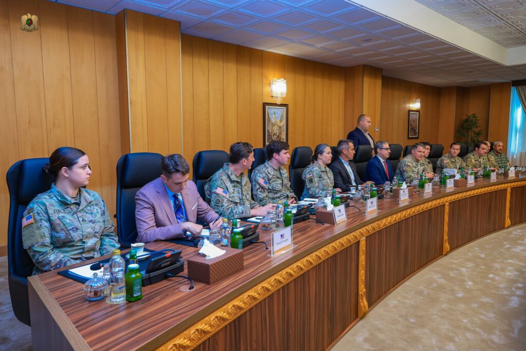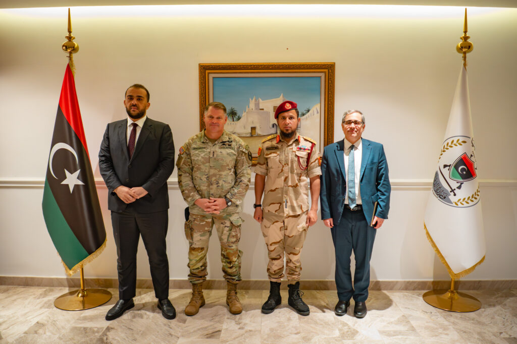 Deputy Defense Minister Abdulsalam Zubi, Right, Lt. General Brennan, Director of Military Intelligence Mahmoud Hamza and Jeremy Berndt meeting in Tripoli, 13 October 2025. (AFRICOM photo)